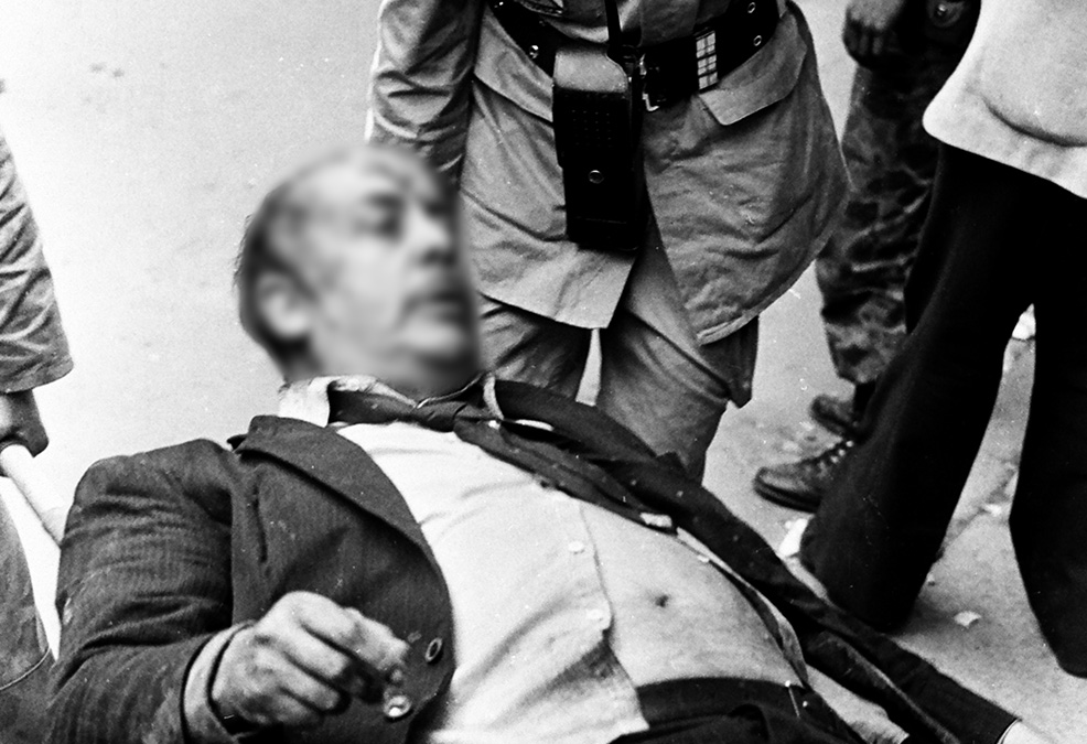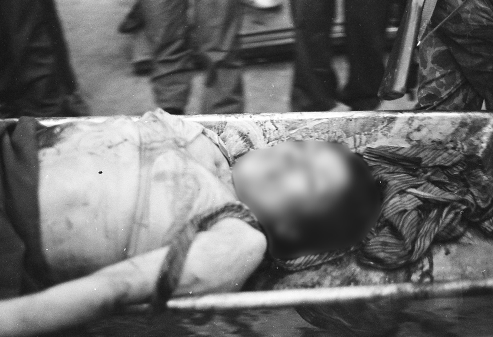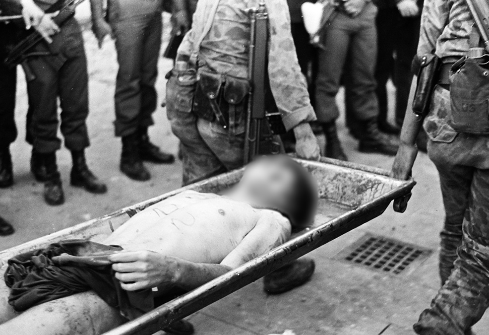 El cuerpo de una víctima, identificado con el número 22 sobre el pecho, yace sobre una bandeja metálica. Es un testimonio silencioso de la tragedia que dejó la toma y la retoma del Palacio de Justicia