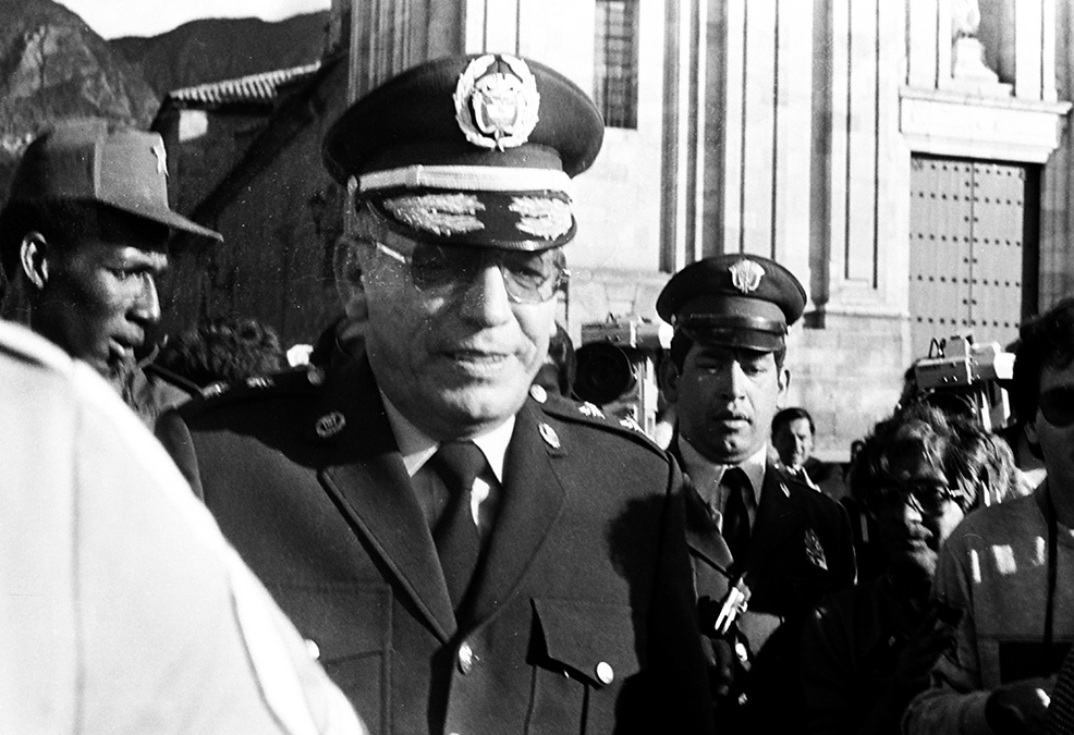 Militares se acercaron a observar la operación desde la Plaza de Bolívar; al fondo se distingue la Catedral Primada, testigo silencioso de la tragedia.