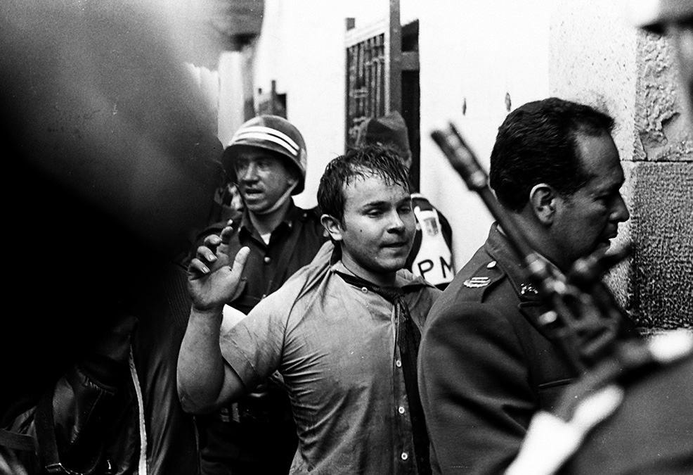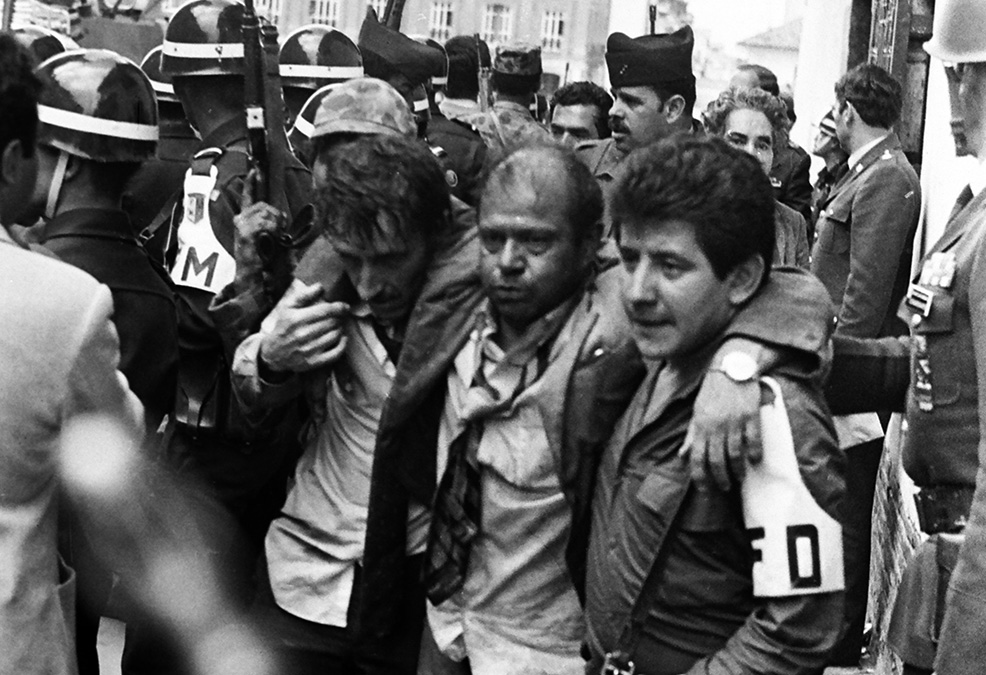 Rostros de la confusión. En medio de la tensión y el fuego cruzado, militares llevaban a personas que salían del Palacio de Justicia a la Casa del Florero.