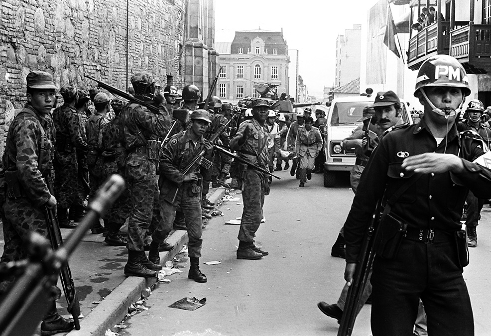 Cerco total: Se concentran las primeras tropas del Ejército y la Policía Militar. Se acordonan los accesos al Palacio de Justicia.