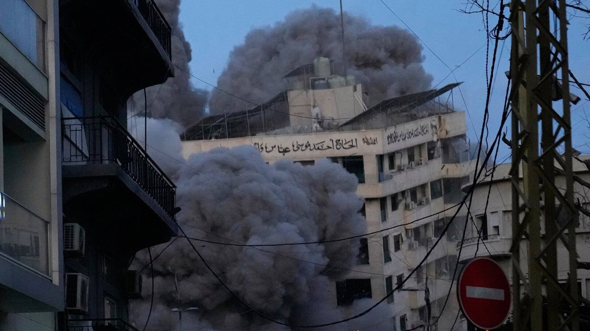 Un edificio se derrumba, mientras el humo se eleva, tras un ataque israelí en el centro de Beirut, Líbano, el miércoles 18 de marzo de 2026.
