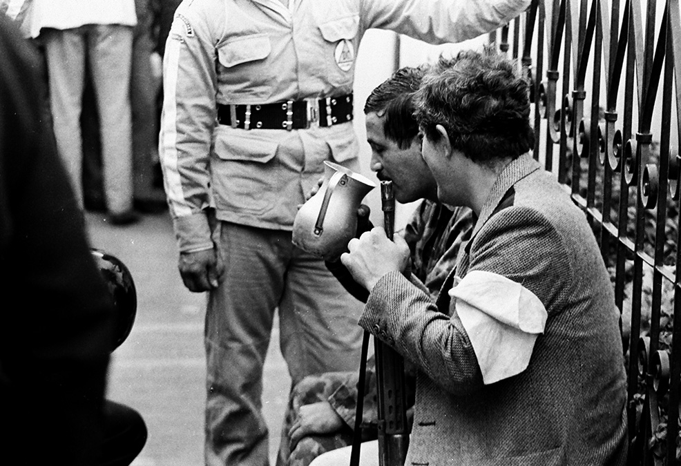 Rostros de la confusión. En medio de la tensión y el fuego cruzado, militares llevaban a personas que salían del Palacio de Justicia a la Casa del Florero.